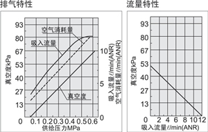 排气特性/流量特性图标(供给压力在0.45MPa的情况下)