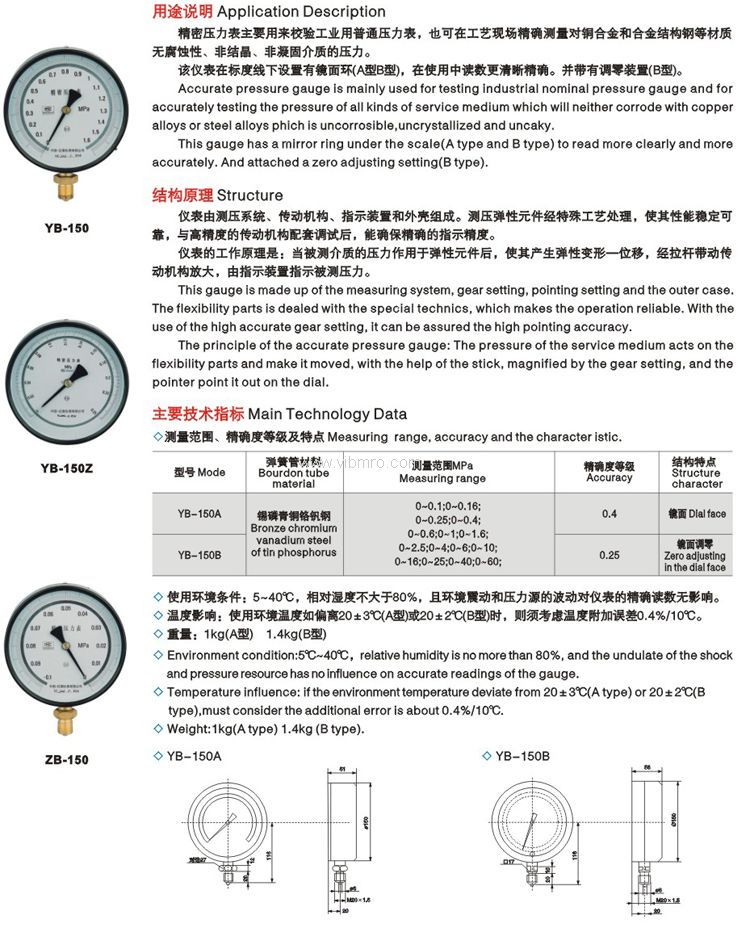YB-150A精度压力表